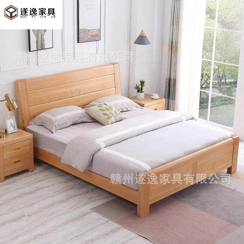 榉木实木床1.8m现代简约1米5抽屉婚床高箱储物双人床南康工厂直销由