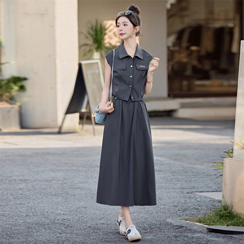 工装 背心半身裙两件套女夏季 显瘦洋气气质套装 风无袖