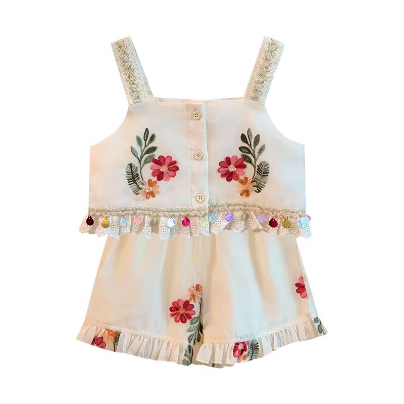 法国Uamtor女小童2026夏季 洋气短裤 两件套女宝宝吊带套装 网红 新款