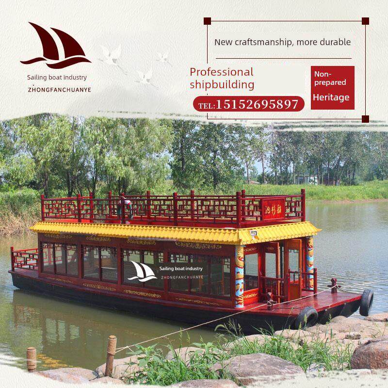 为您提供商品木船画舫大型观光旅游电动彷古实房屋玻璃钢双层水上餐饮接待会议的详细介绍,