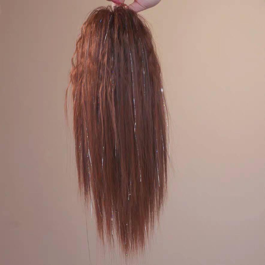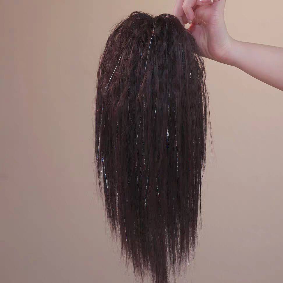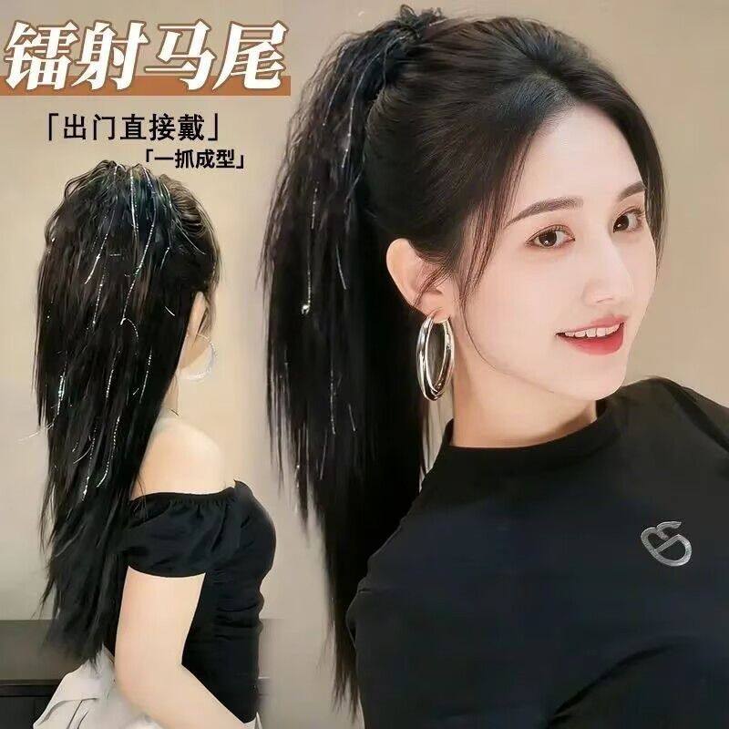 超闪超吸睛镭射瀑布马尾假发女抓夹拉美卷半扎马尾增发量高颅顶