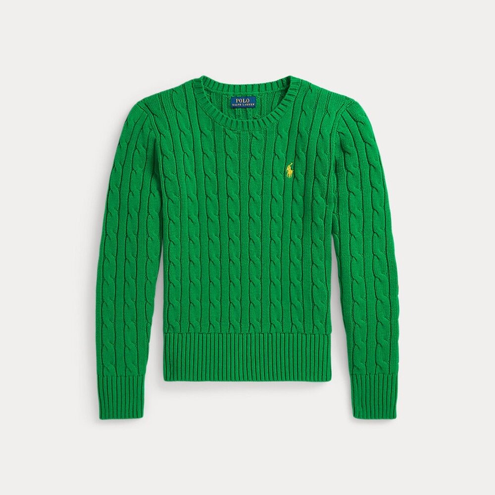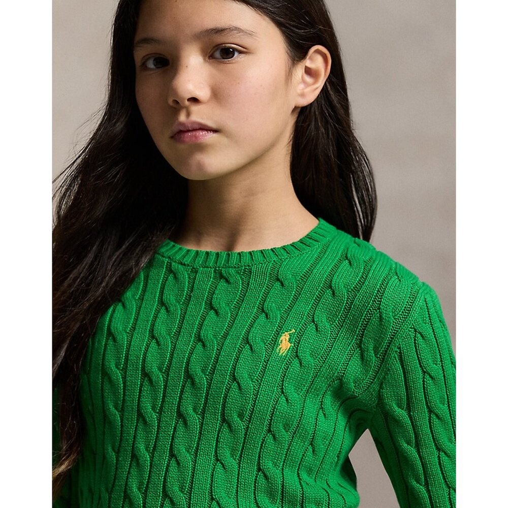 为您提供商品欧洲直邮Ralph 女孩绿色棉质绞花针织肘部补丁毛 Lauren拉夫劳伦的详细介绍,