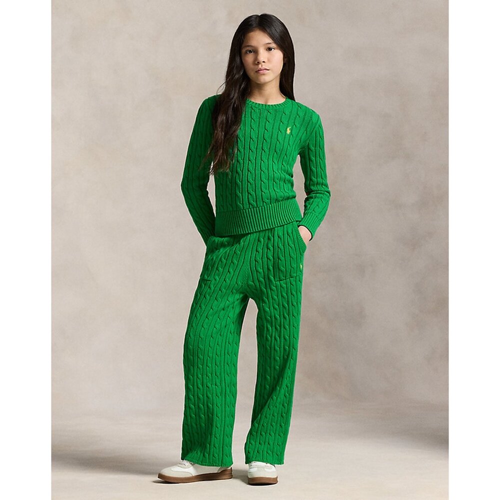 欧洲直邮Ralph 女孩绿色棉质绞花针织肘部补丁毛 Lauren拉夫劳伦由