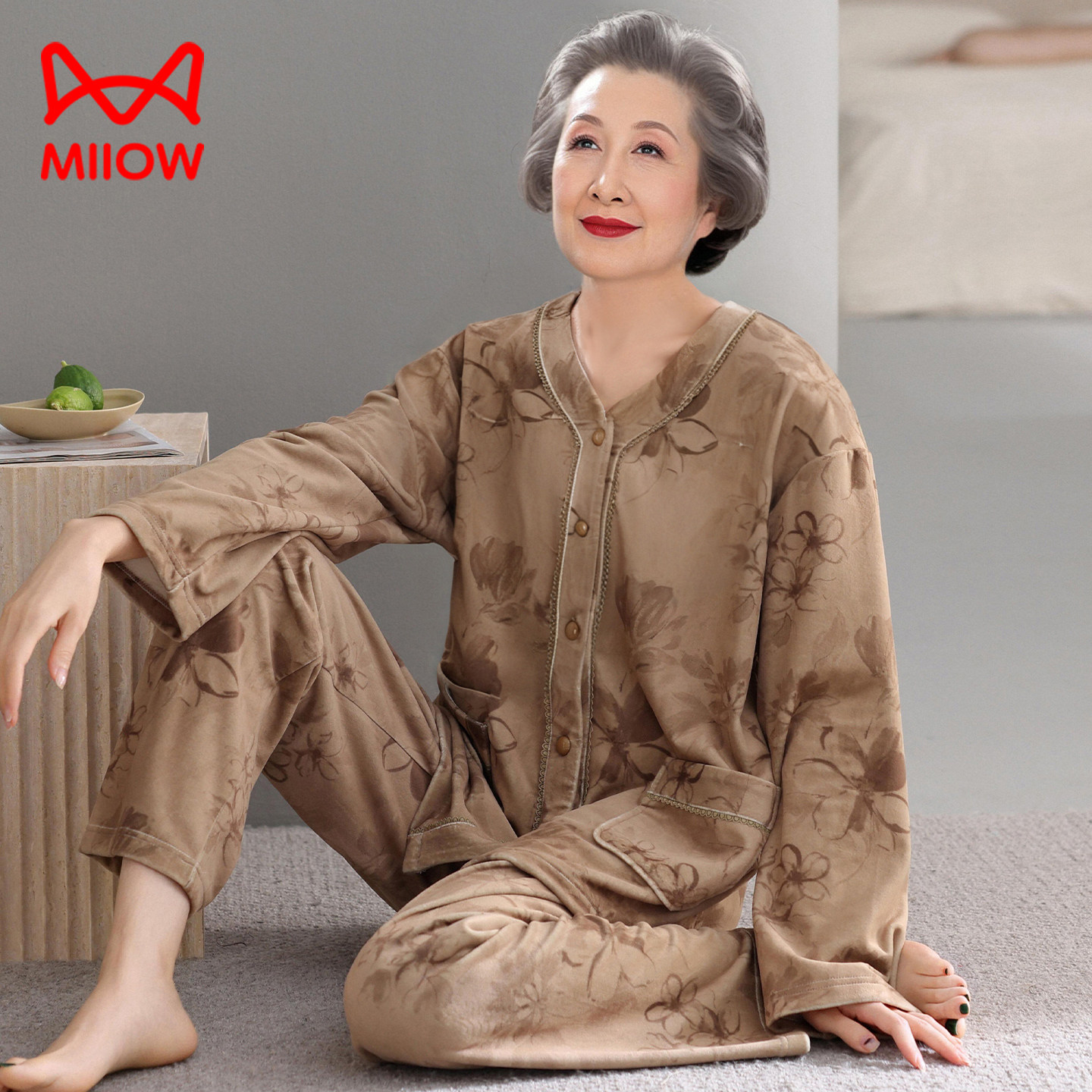为您提供商品猫人海岛绒睡衣女秋冬薄款 保暖 珊瑚绒中老年妈妈5060岁家居服大码的详细介绍,
