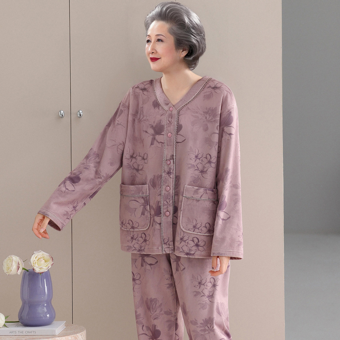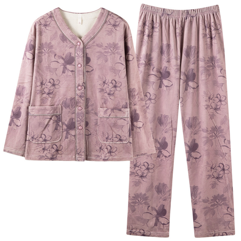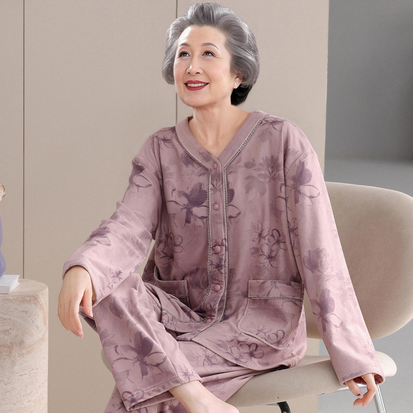 猫人海岛绒睡衣女秋冬薄款 保暖 珊瑚绒中老年妈妈5060岁家居服大码