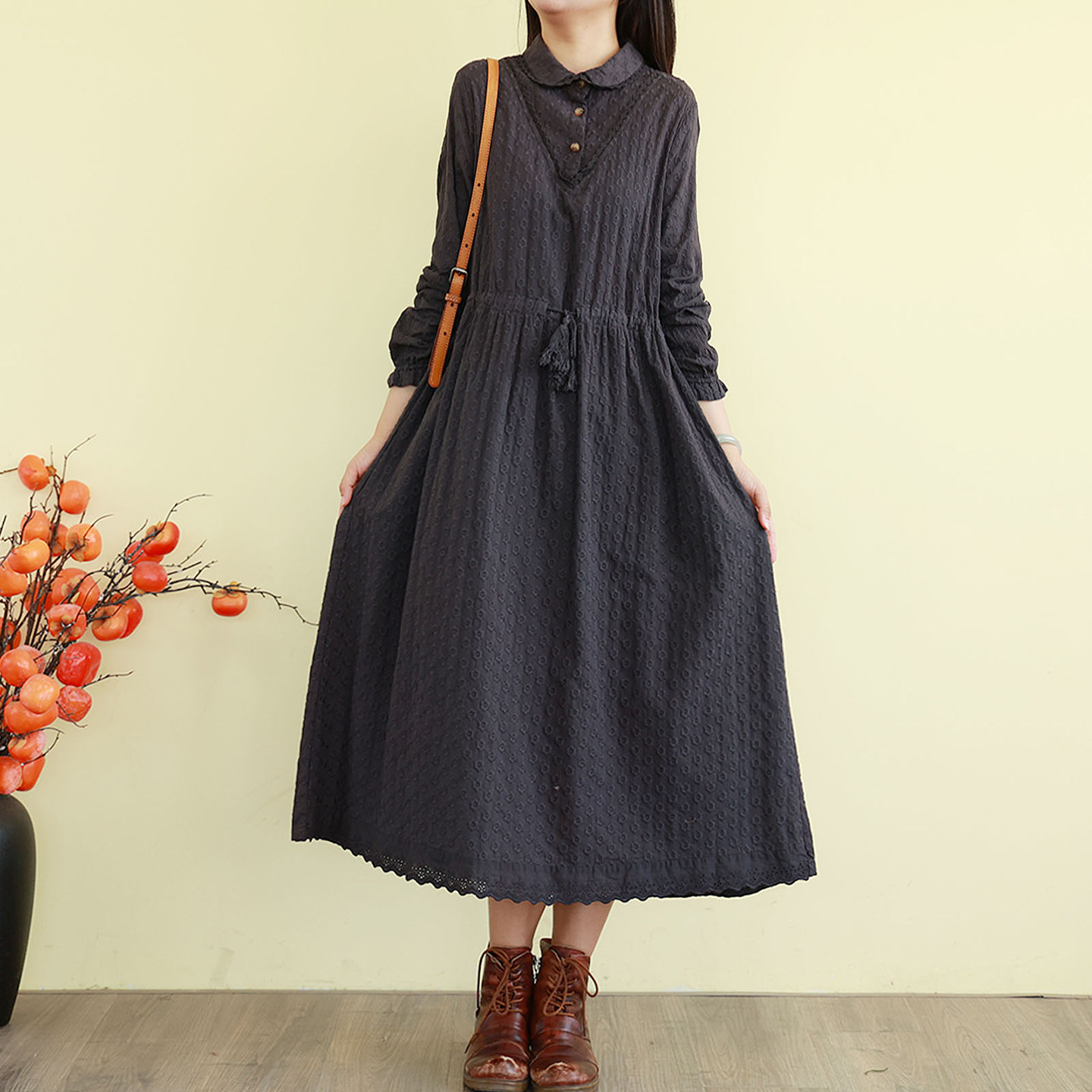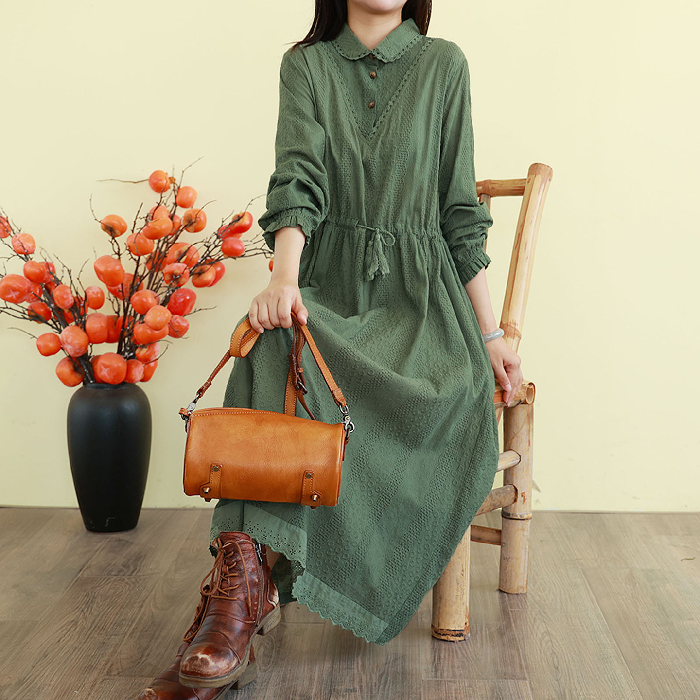 翻领全棉肌理感修身 连衣裙 法式 fragileheart易碎商店·风吻花枝