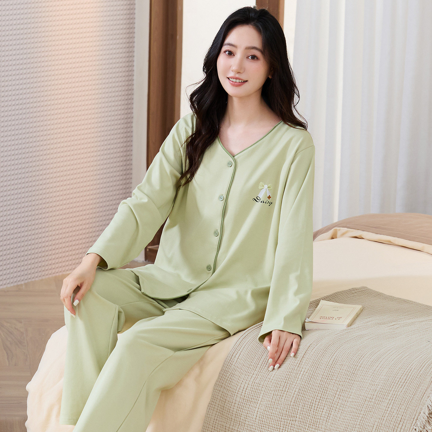 纯棉女士长袖 睡衣新款 女款 家居服秋冬全棉大码 套装 秋款 芬腾春秋季