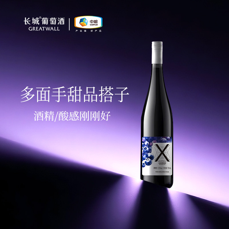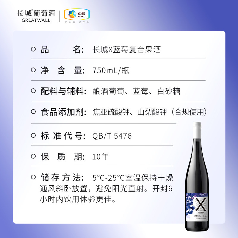 长城X葡萄蓝莓复合果酒1瓶甜品搭子低度微醺「长城酒官方旗舰店」