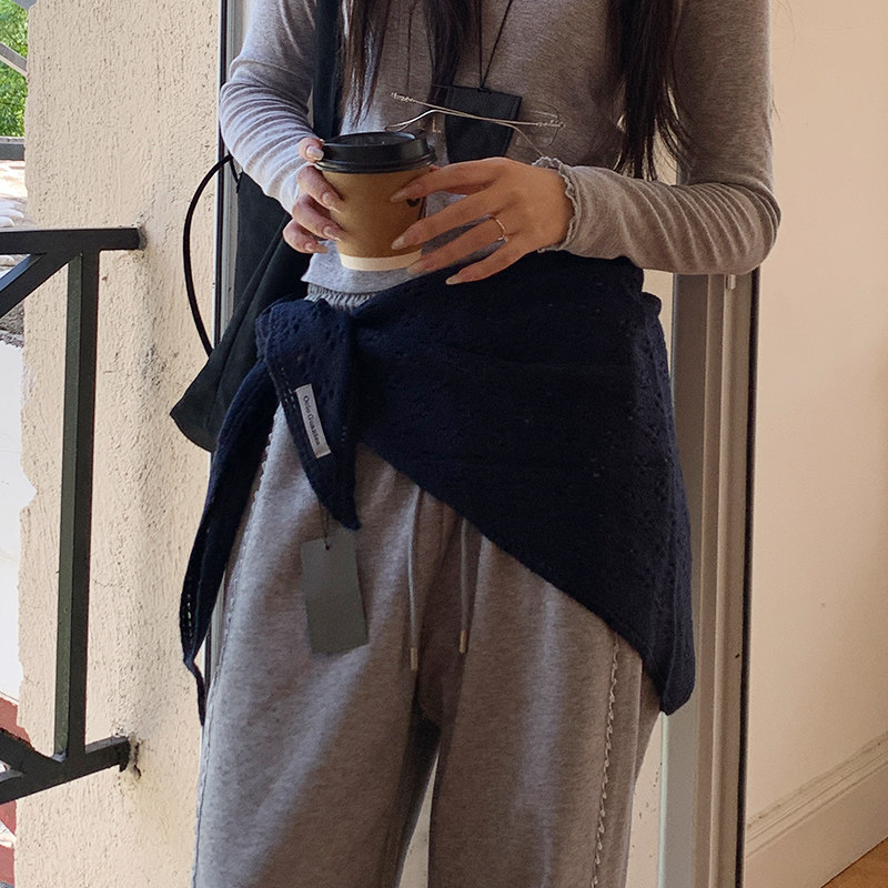 针织三角巾小披肩女外搭坎肩护颈围脖子百搭围巾腰带配饰叠穿屁帘