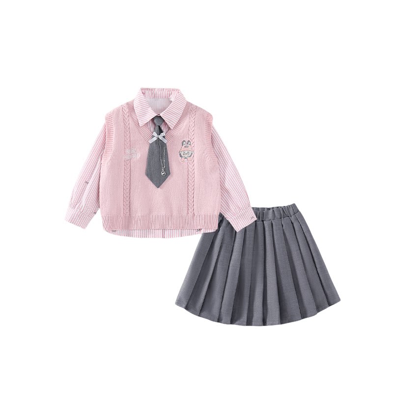 韩系儿童装 拉夏贝尔女童秋装 套装 2026新款 百褶裙三件套 学院风衬衫