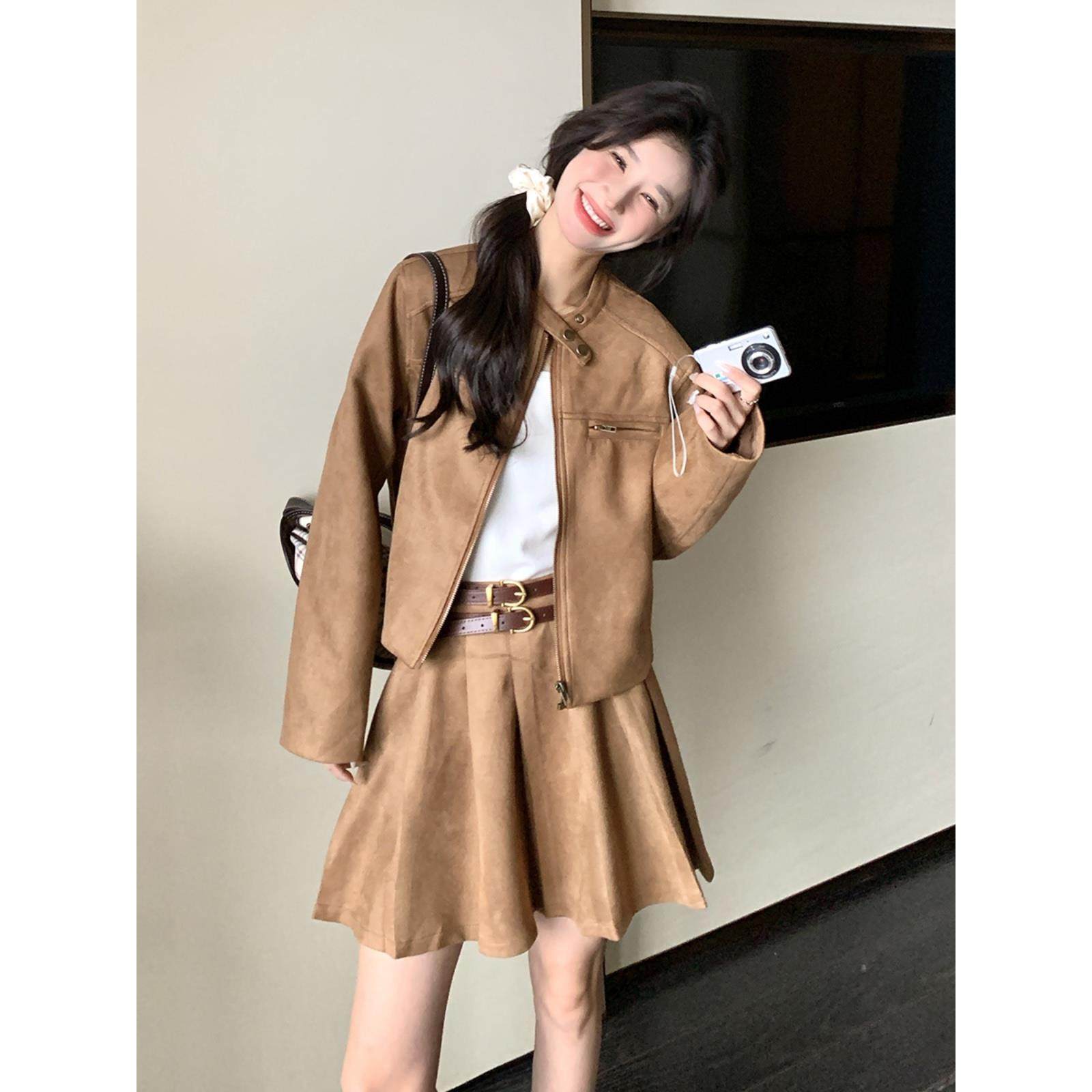 麂皮绒时髦减龄洋气套装 小个子穿搭百褶裙两件套潮 女春秋2025新款