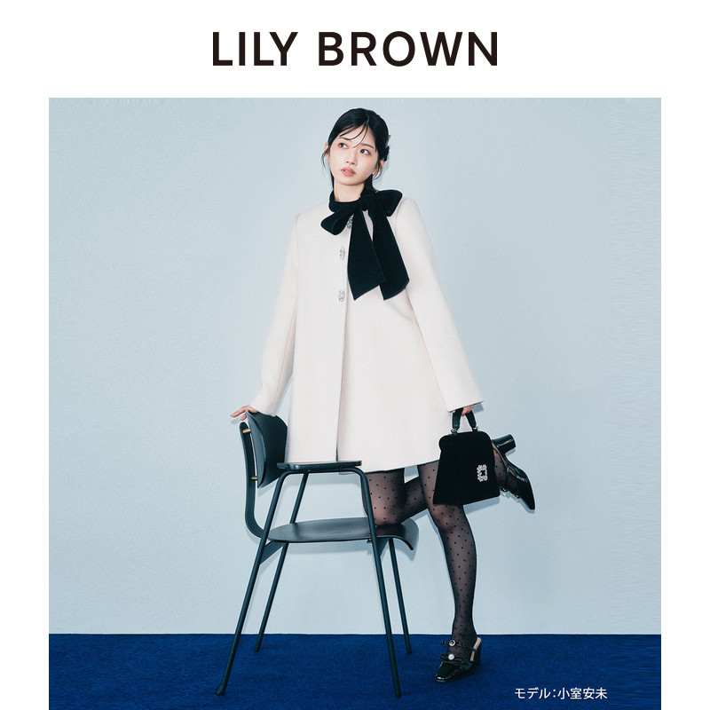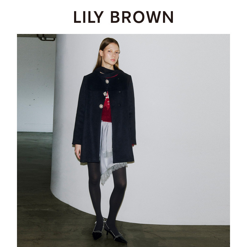LILY 蝴蝶结系带钻扣羊毛呢外套大衣LWFC255811 BROWN秋冬款由