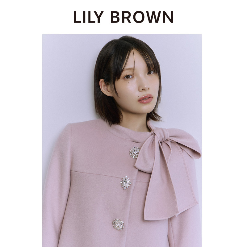 LILY 蝴蝶结系带钻扣羊毛呢外套大衣LWFC255811 BROWN秋冬款