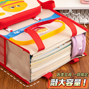 汉堡薯条补习袋手提袋学生拎书袋大容量帆布袋小学生初中作业试卷收纳袋美术袋可拆卸文件袋男女学习补课包