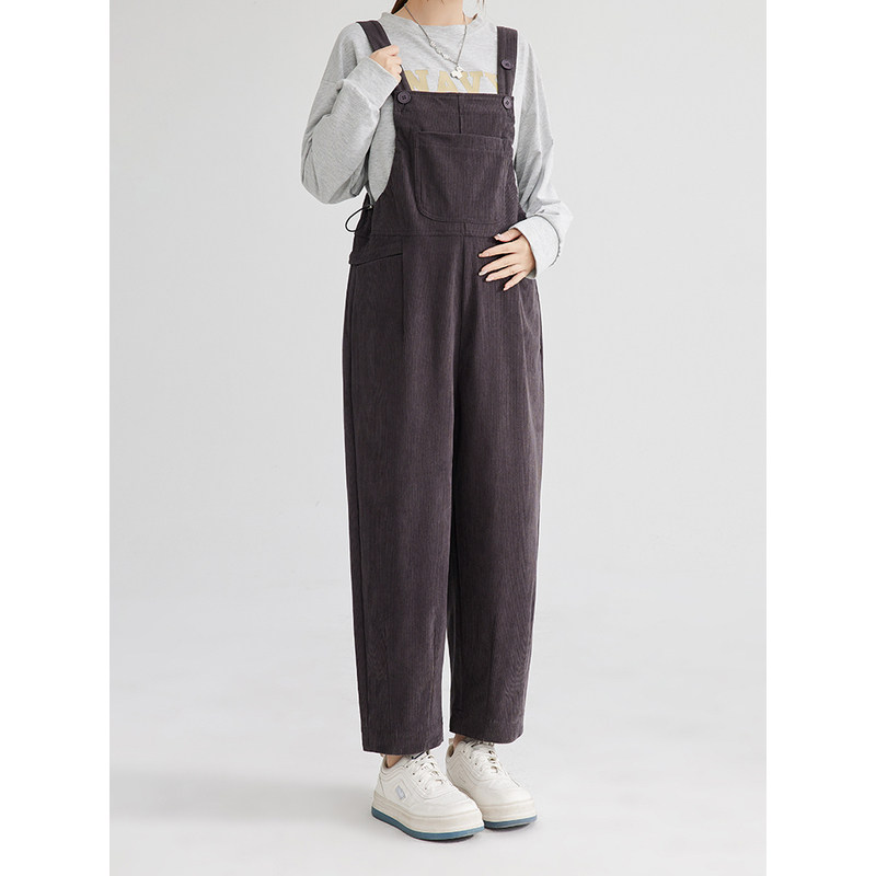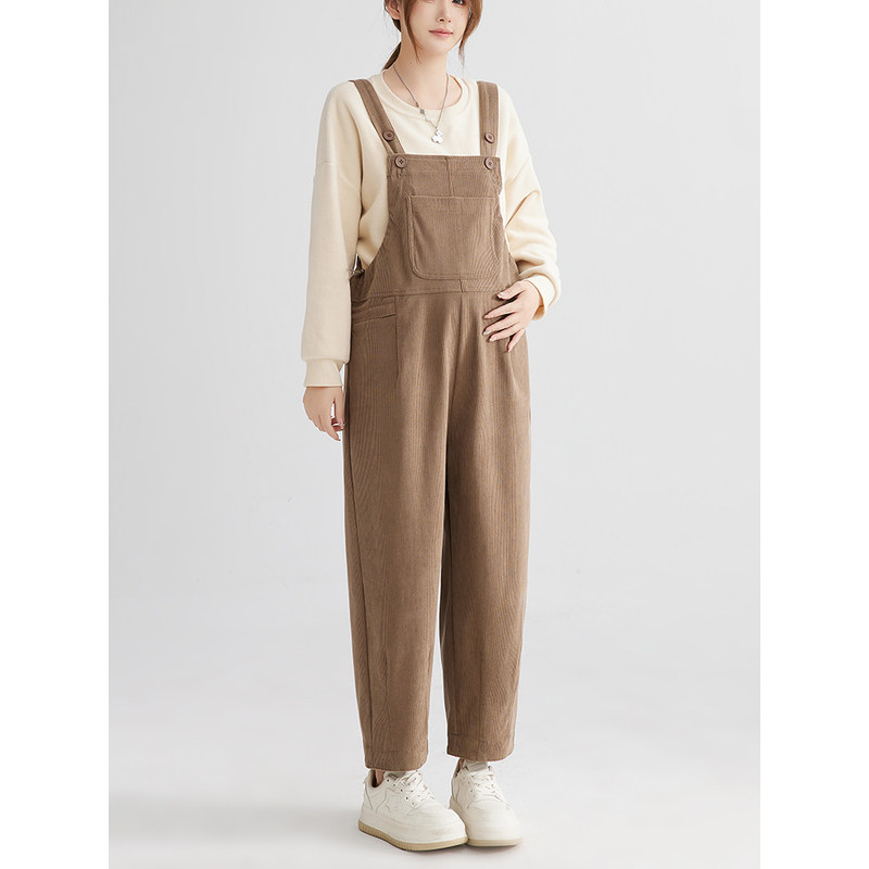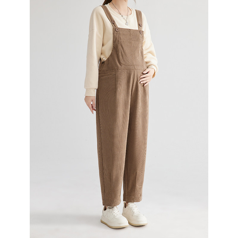 外穿灯芯绒裤 英国DHWA 孕妇背带裤 秋冬新款 免脱加厚加绒托腹时尚由