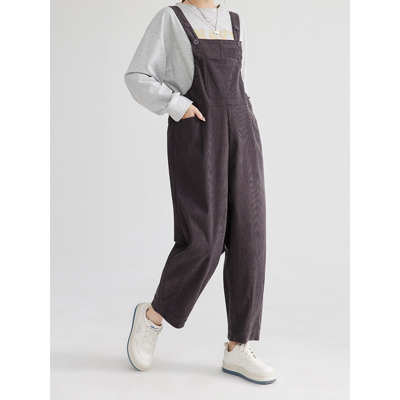 外穿灯芯绒裤 英国DHWA 孕妇背带裤 秋冬新款 免脱加厚加绒托腹时尚