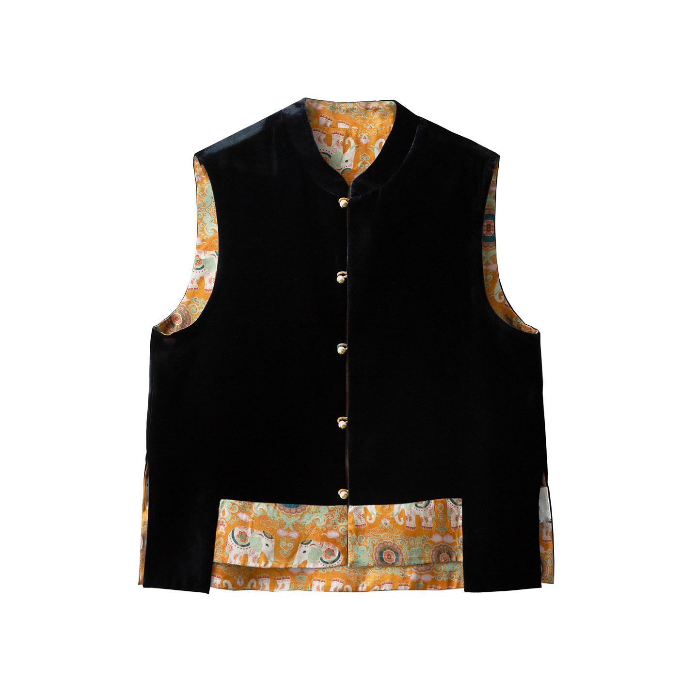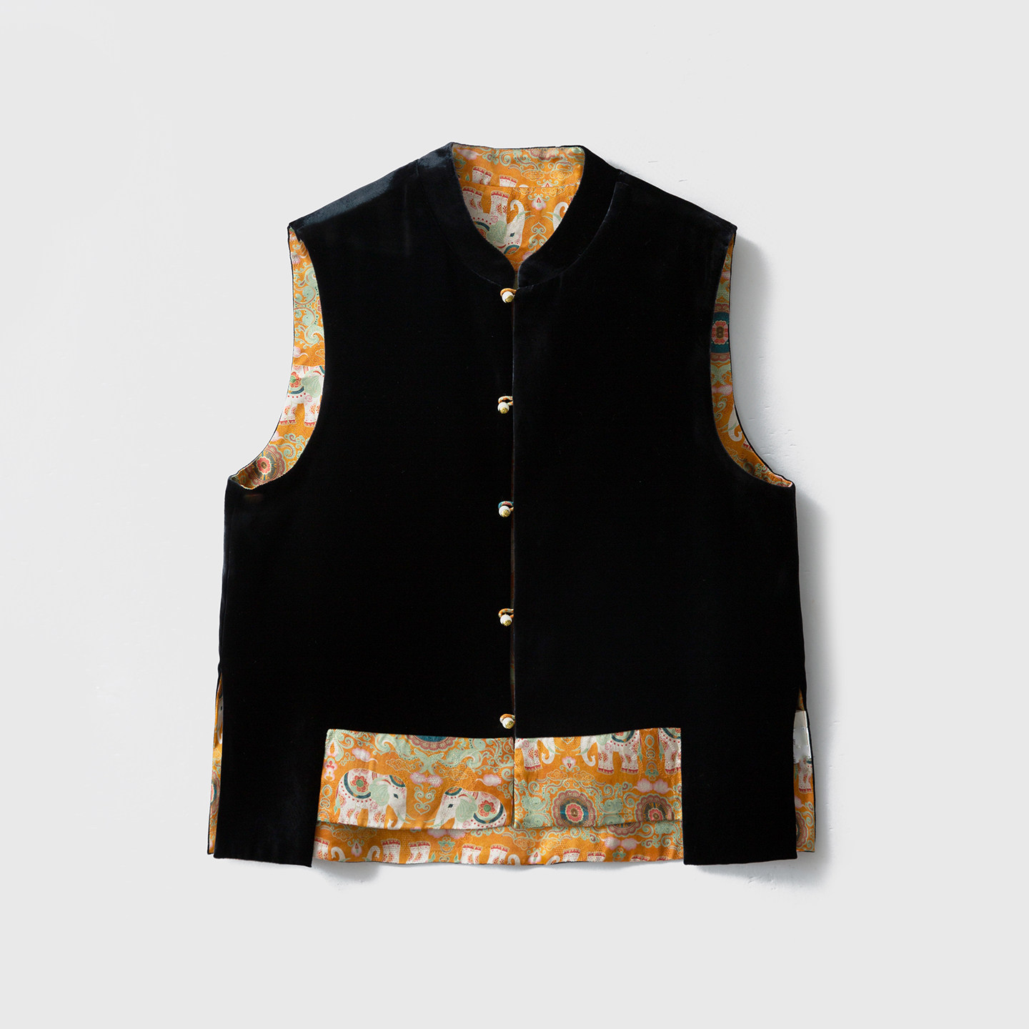 双面穿香云纱丝绒国风设计感真丝马甲女桑蚕丝马甲上衣春 一丝牵由