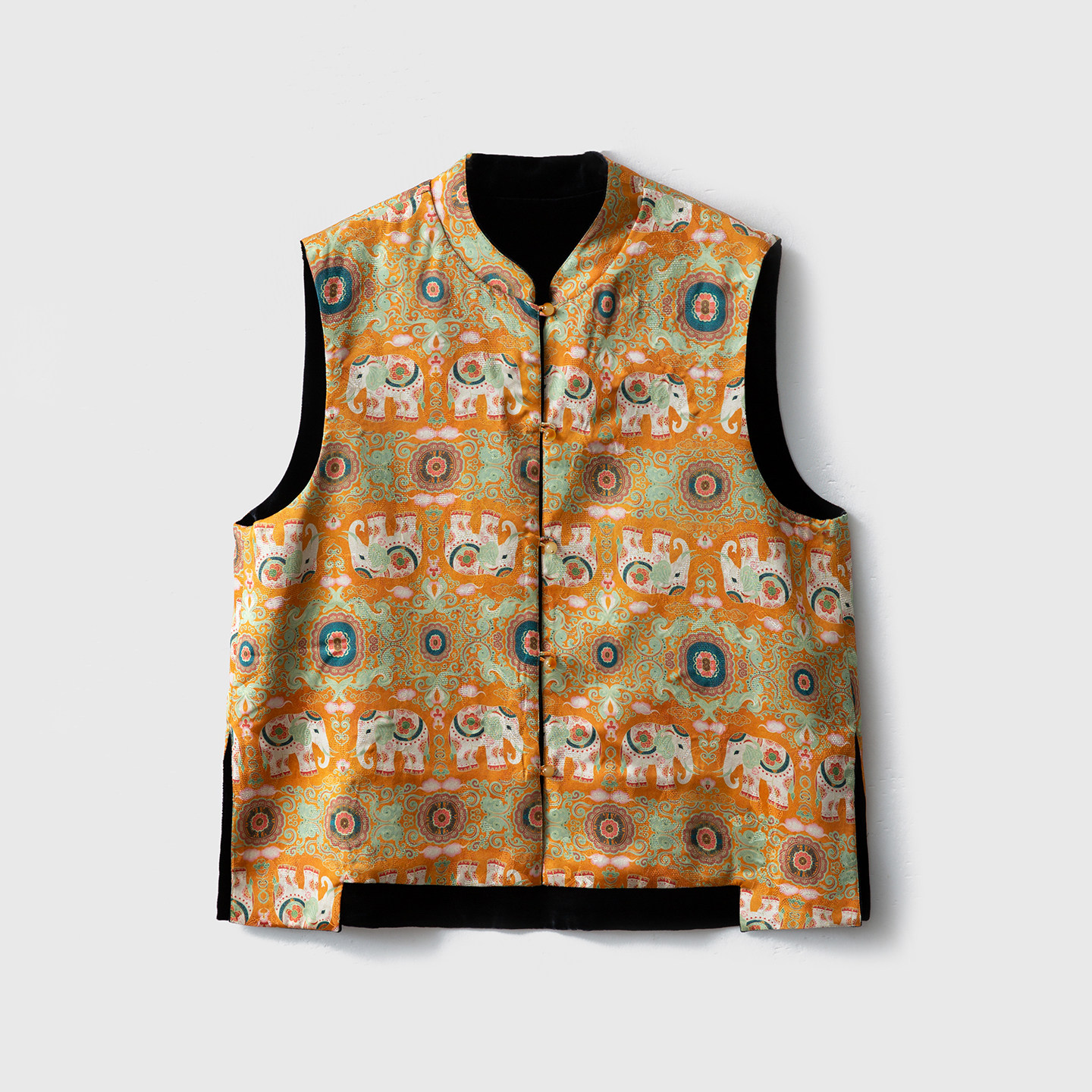 立领坎肩上衣唐装 马夹背心女外搭秋 国风马甲高级感宋锦无袖 新中式