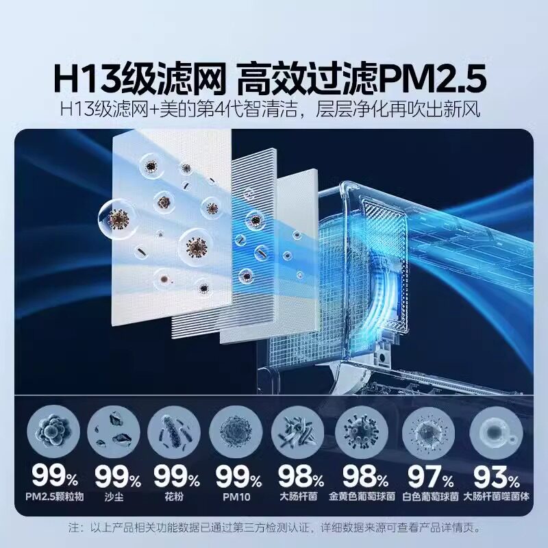 为您提供商品美 空调大1.5匹一级能效变频家用挂机冷暖两用除湿静新风XF1的详细介绍,
