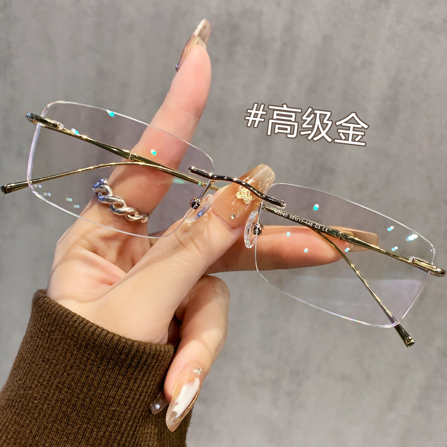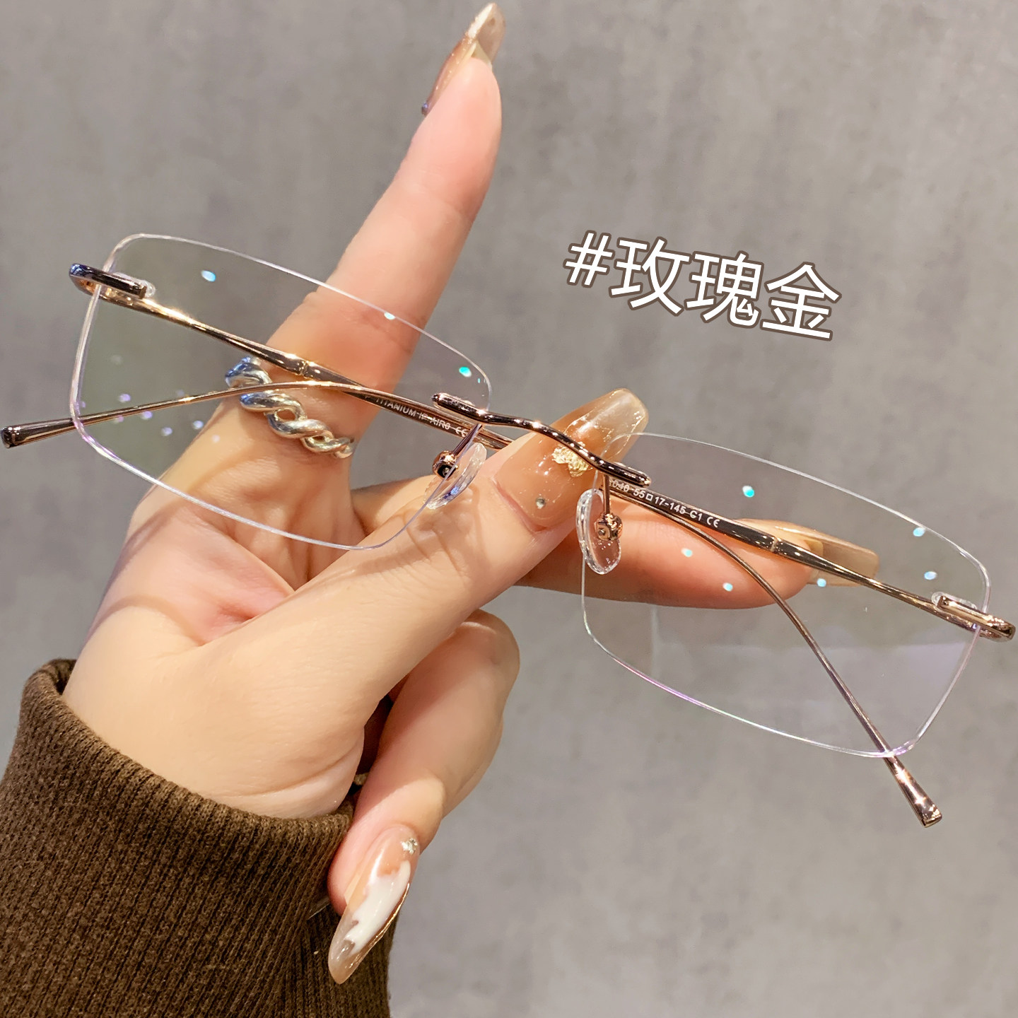 高智感无框眼镜近视女可配度数高级感超轻钛架镜框素颜 森林北同款由