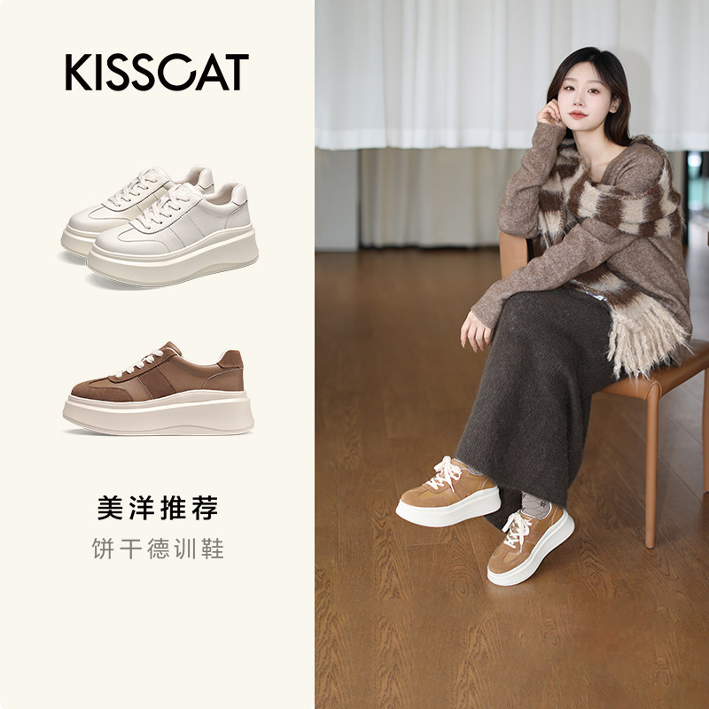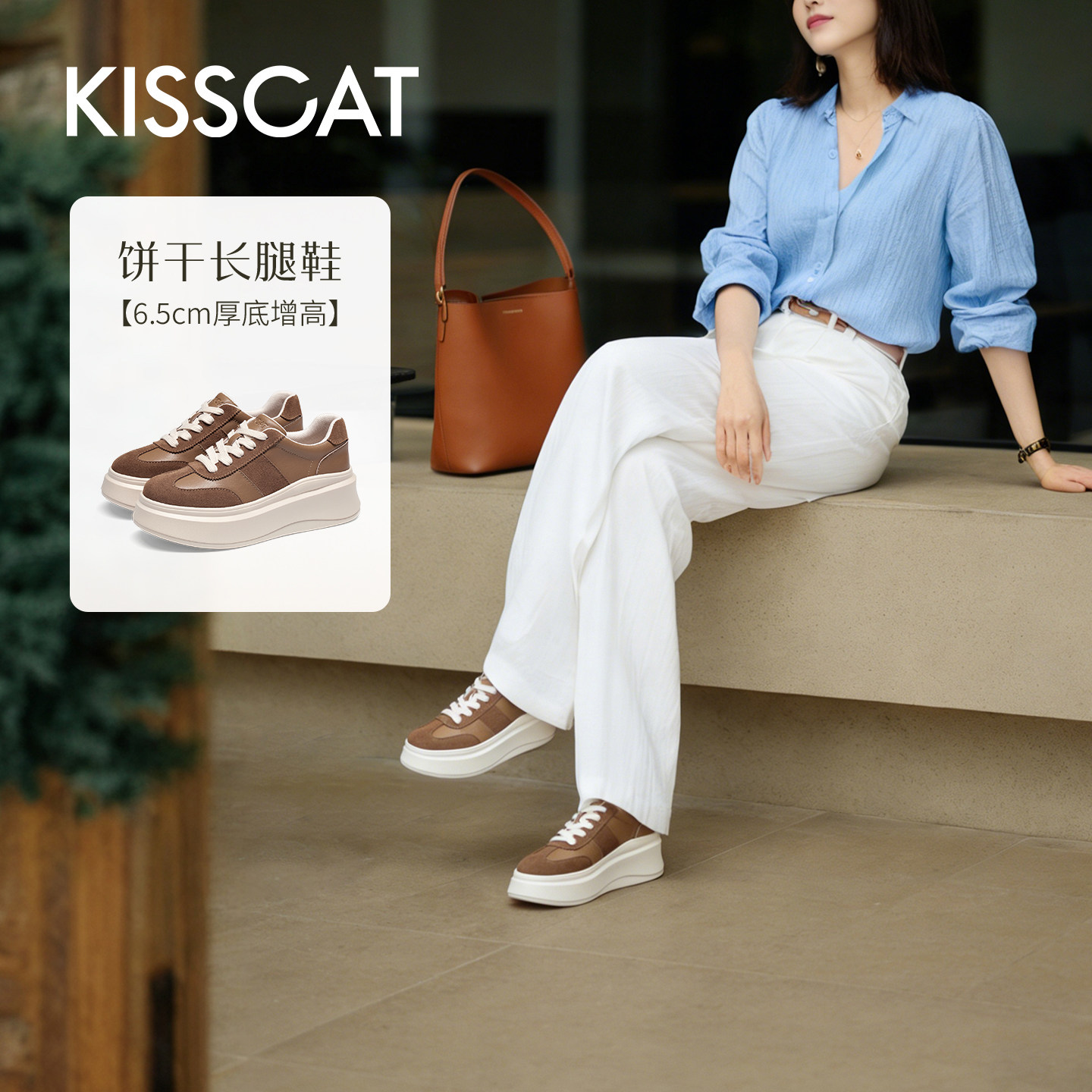 KISSCAT接吻猫 美拉德复古德训鞋 6.5CM内增高小白鞋 女 饼干长腿鞋由