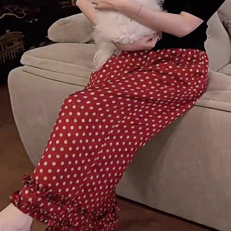 小众时髦宽松薄款 被惊艳到了 红色波点花边裤 女夏季 子 阔腿九分裤由