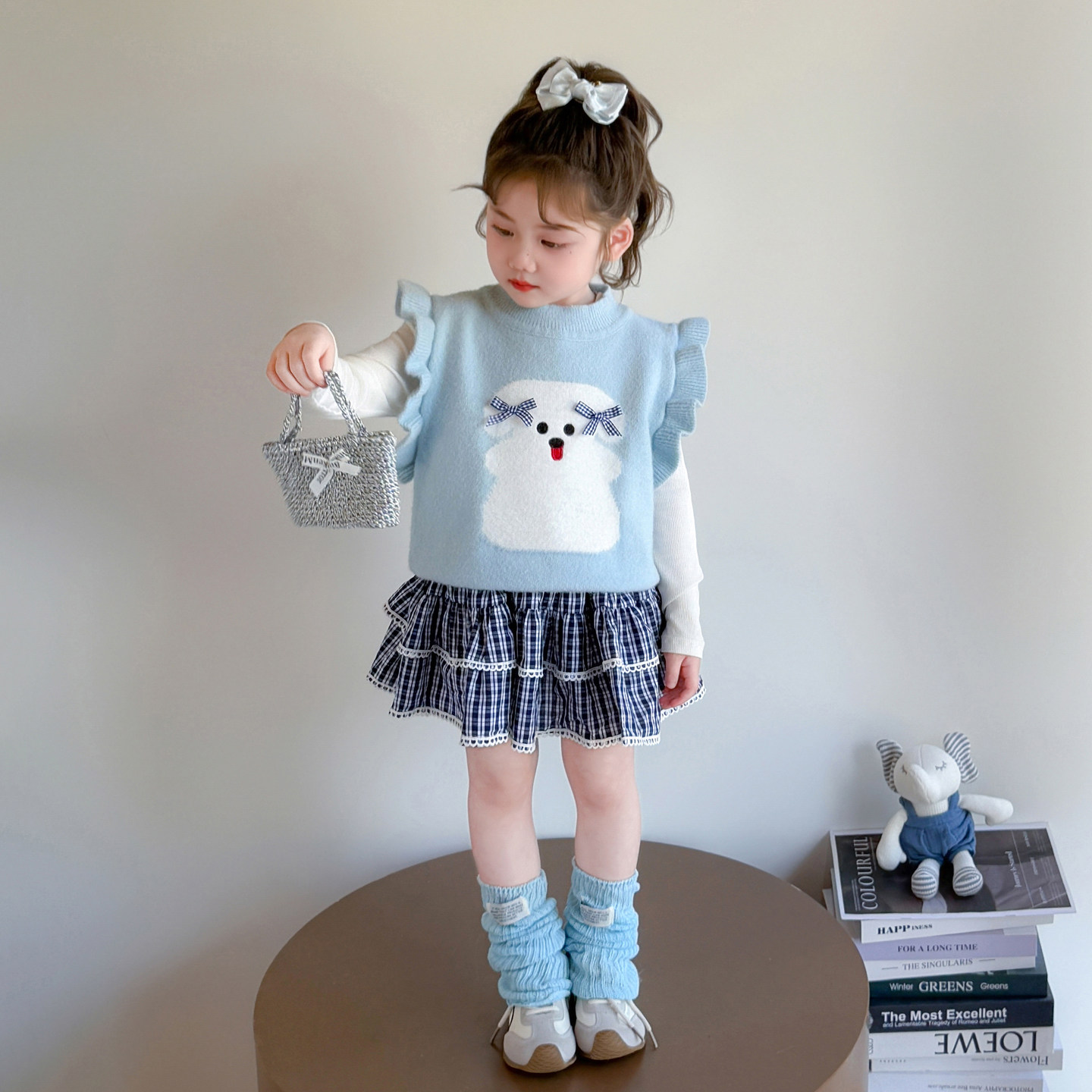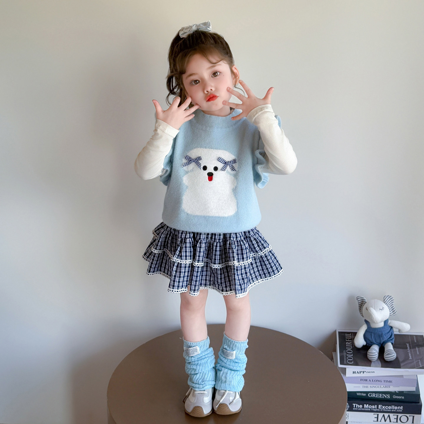 女童卡通连衣裙套装 洋气儿童针织马甲裙女孩两件套公主裙子 春秋装
