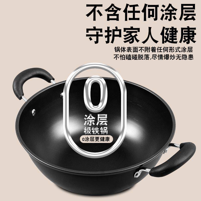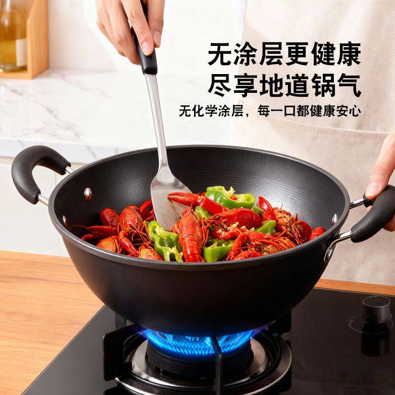 炒锅家用不粘锅无涂层燃气灶适用 章丘炒菜锅传统铁锅官方旗舰老式
