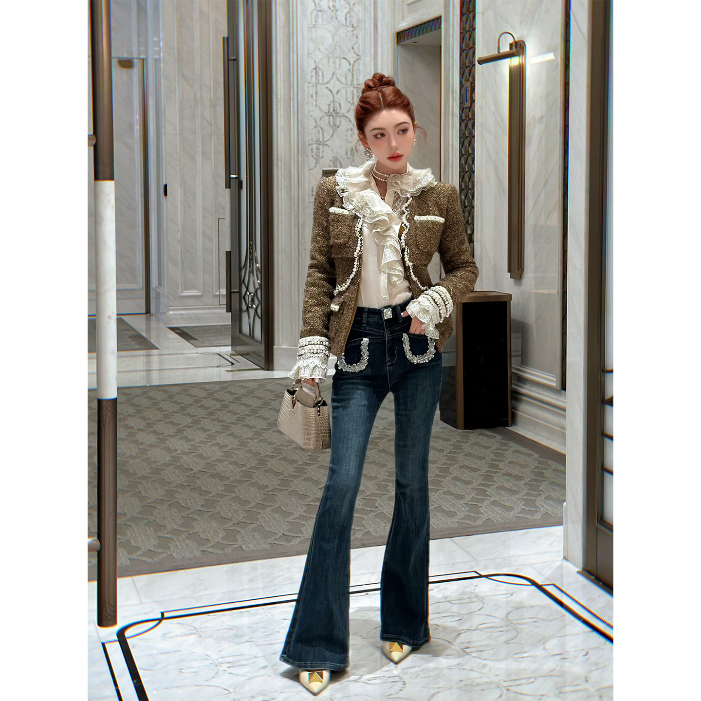 孙瑜儿 女新款 复古宫廷风外套短裤 两件套 鎏金棕粗花呢小香风套装由