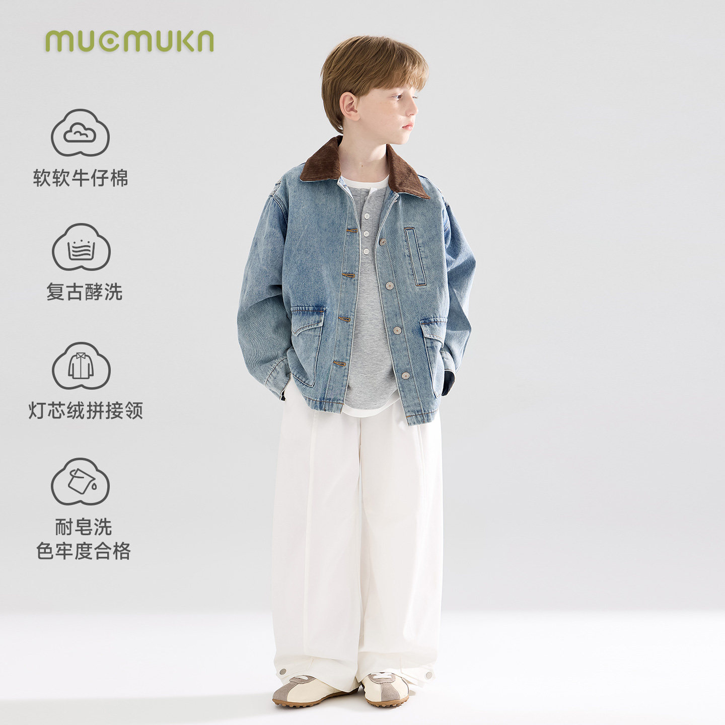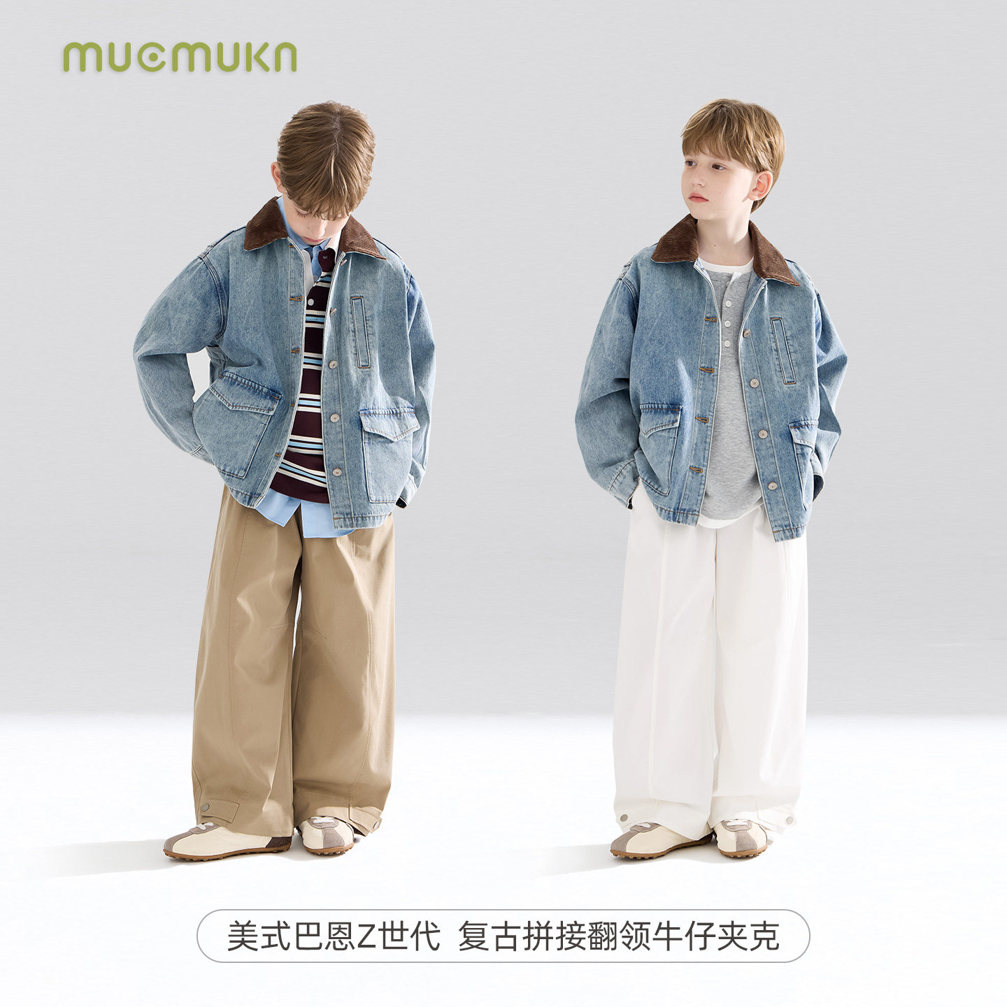MUCMUKN 复古巴恩风拼接灯芯绒牛仔外套夹克男女童春 加州旅程