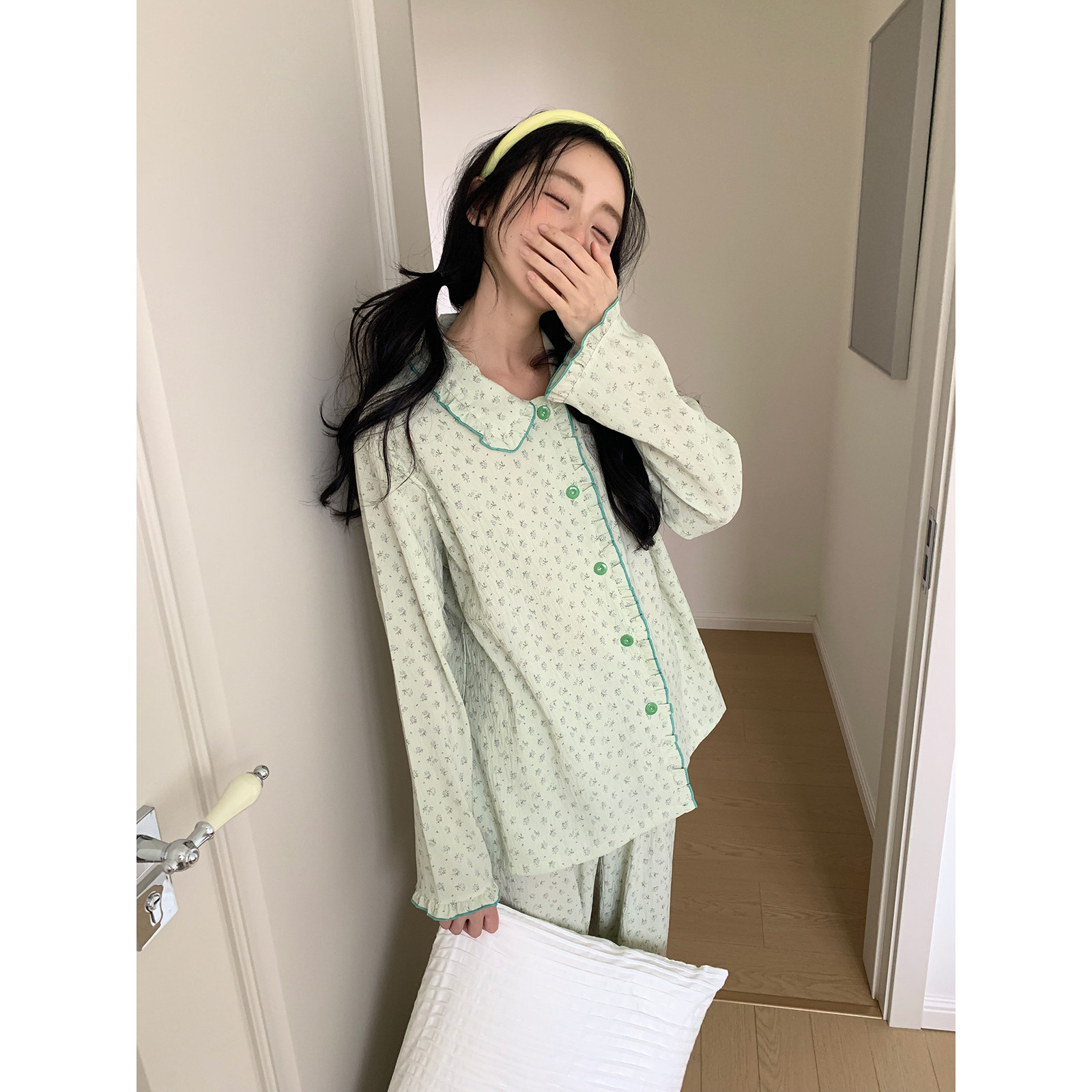 清新碎花翻领睡衣女春宽松可外穿家居服套装 新款 馨帮帮Homedress由