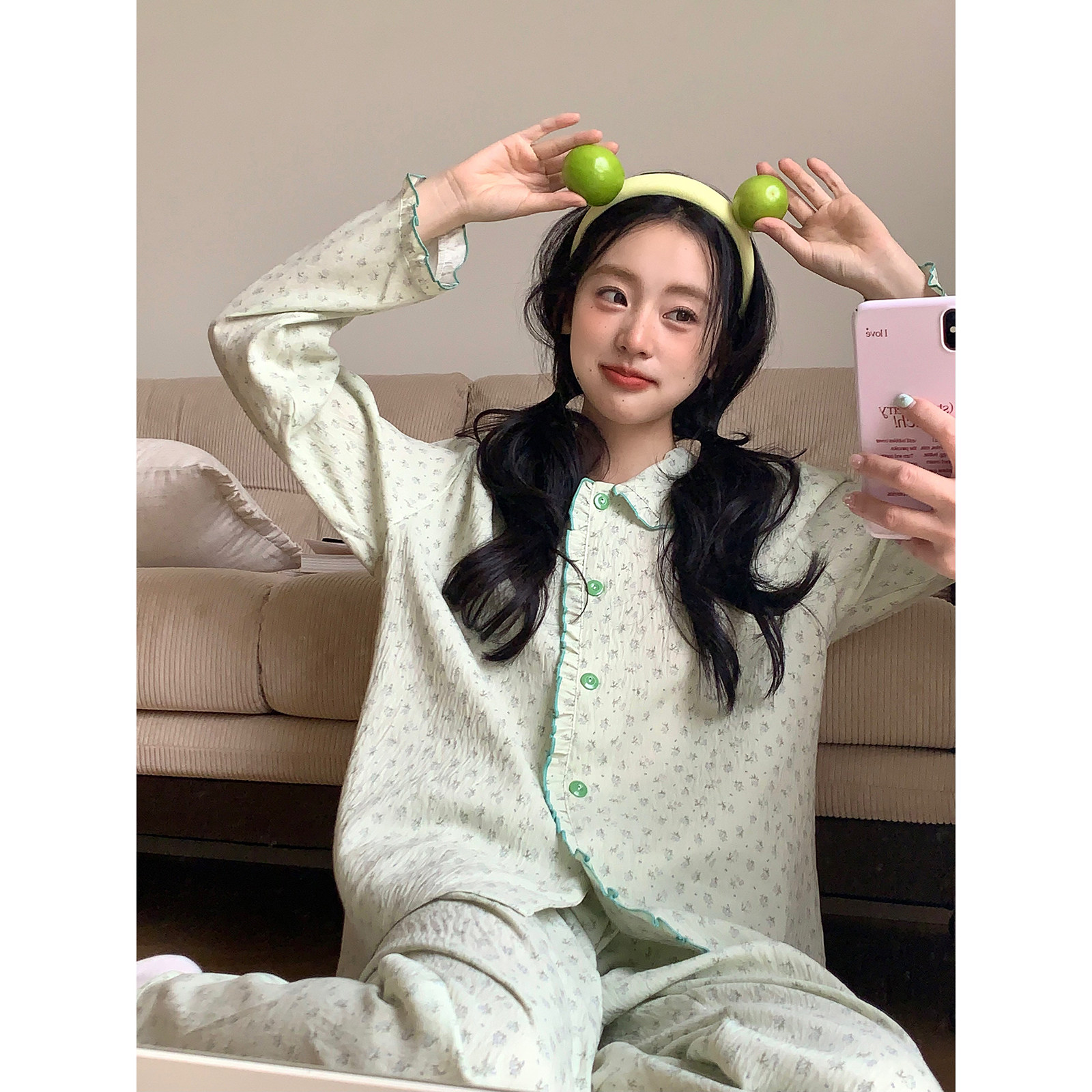 清新碎花翻领睡衣女春宽松可外穿家居服套装 新款 馨帮帮Homedress