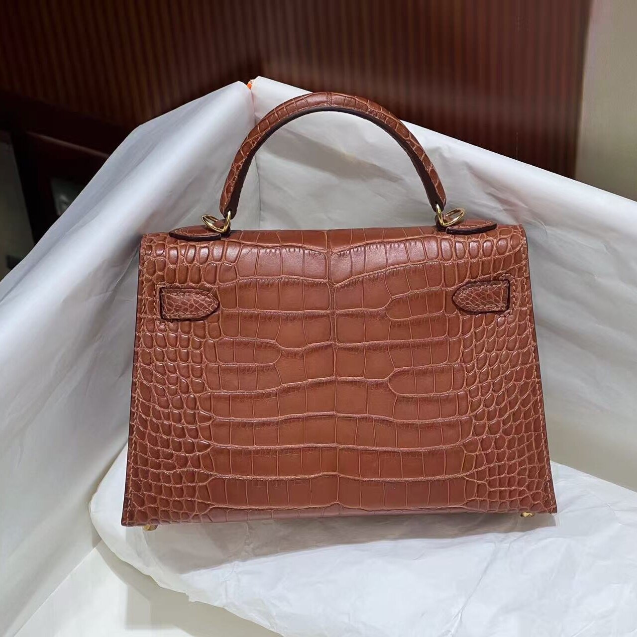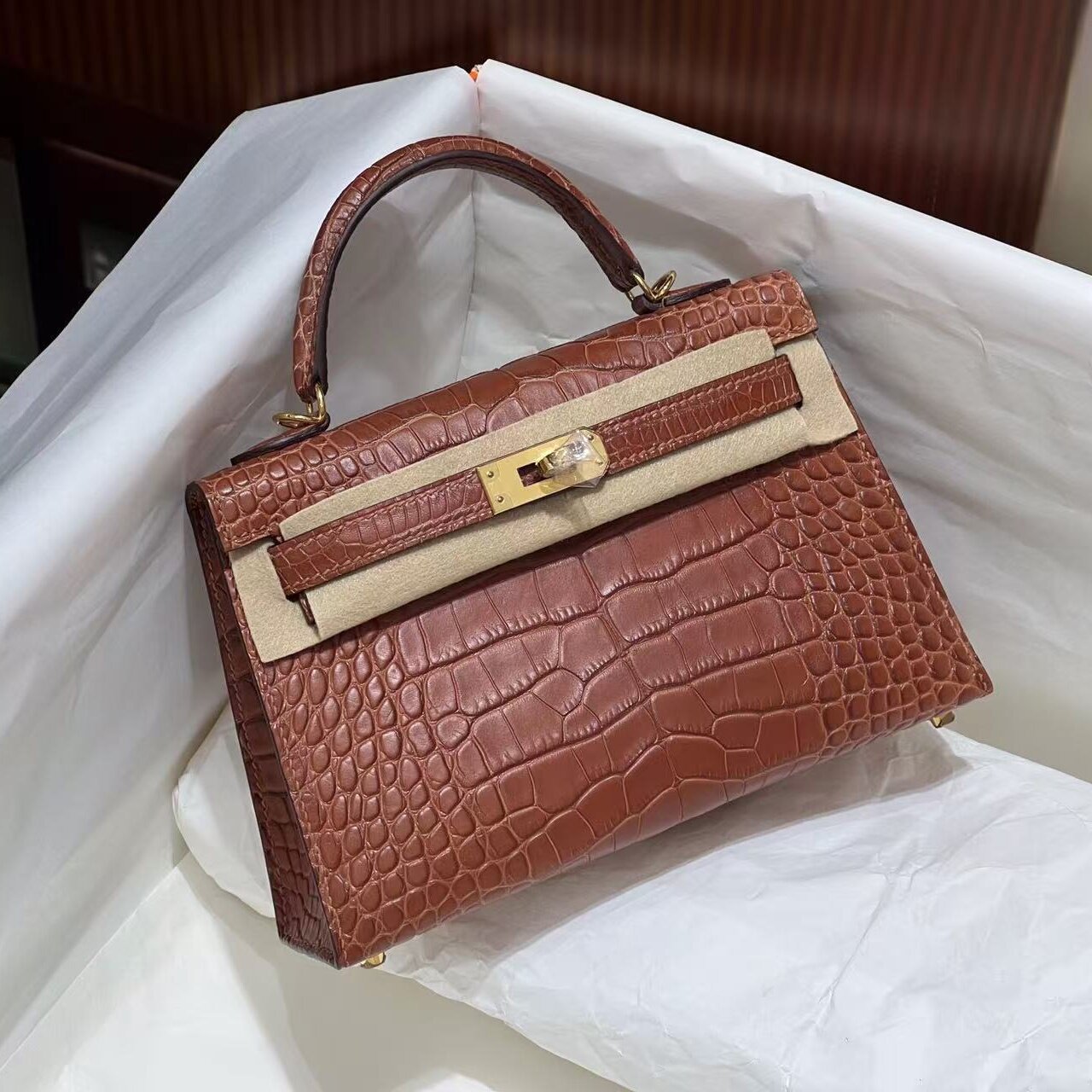 为您提供商品雾面方块美洲鳄鱼皮迷你凯莉二代mini女士单肩斜挎小包纯手工金棕的详细介绍,