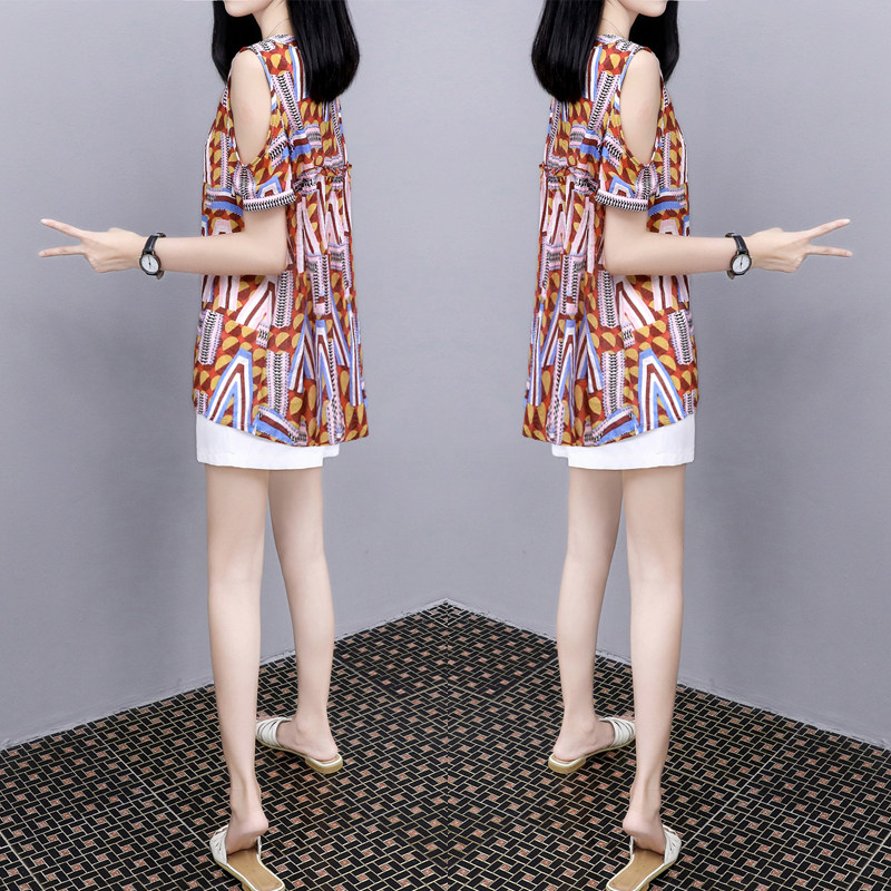 显瘦两件套装 2021夏季 彩色露肩上衣宽松休闲阔腿短裤 时尚 新款 女装