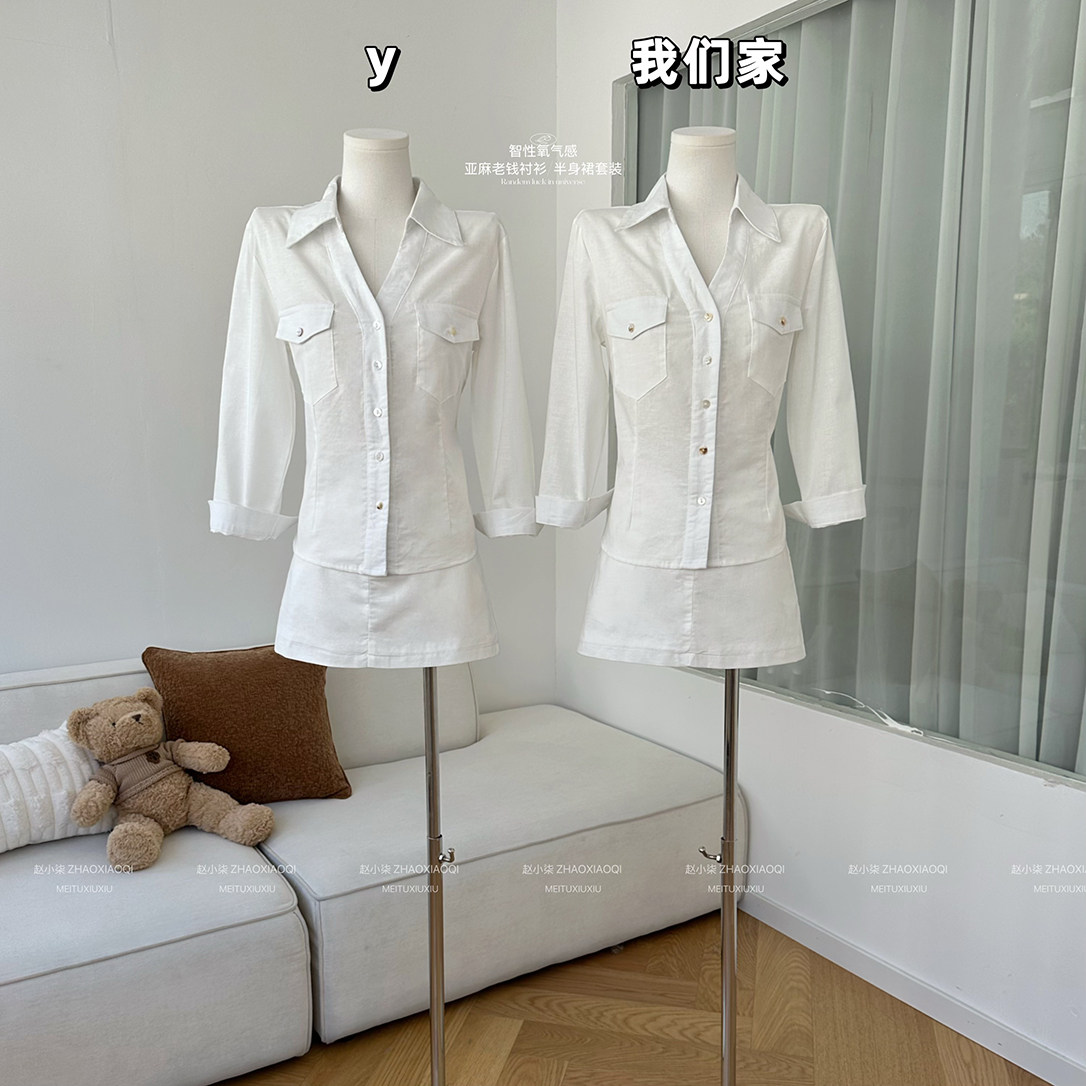 半身裙套装 柒月末 智性氧气感 100原生亚麻老钱衬衫 女春夏季