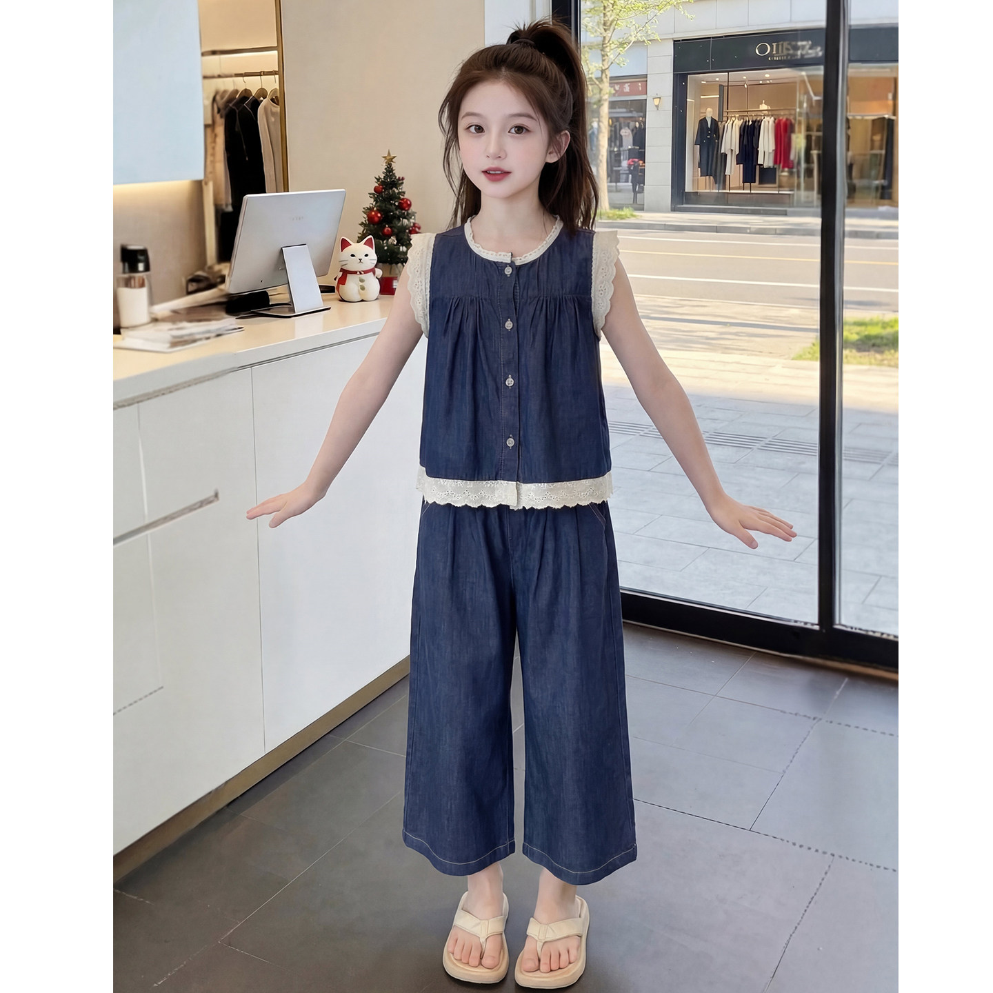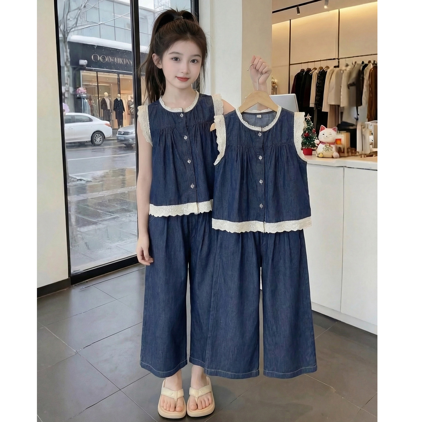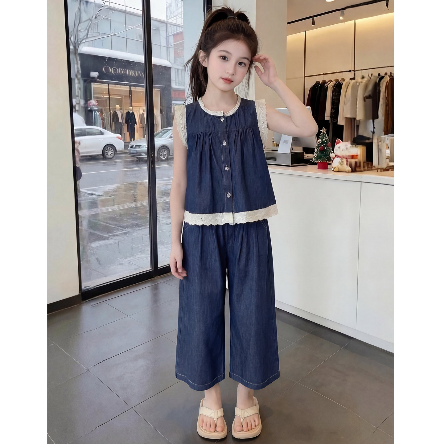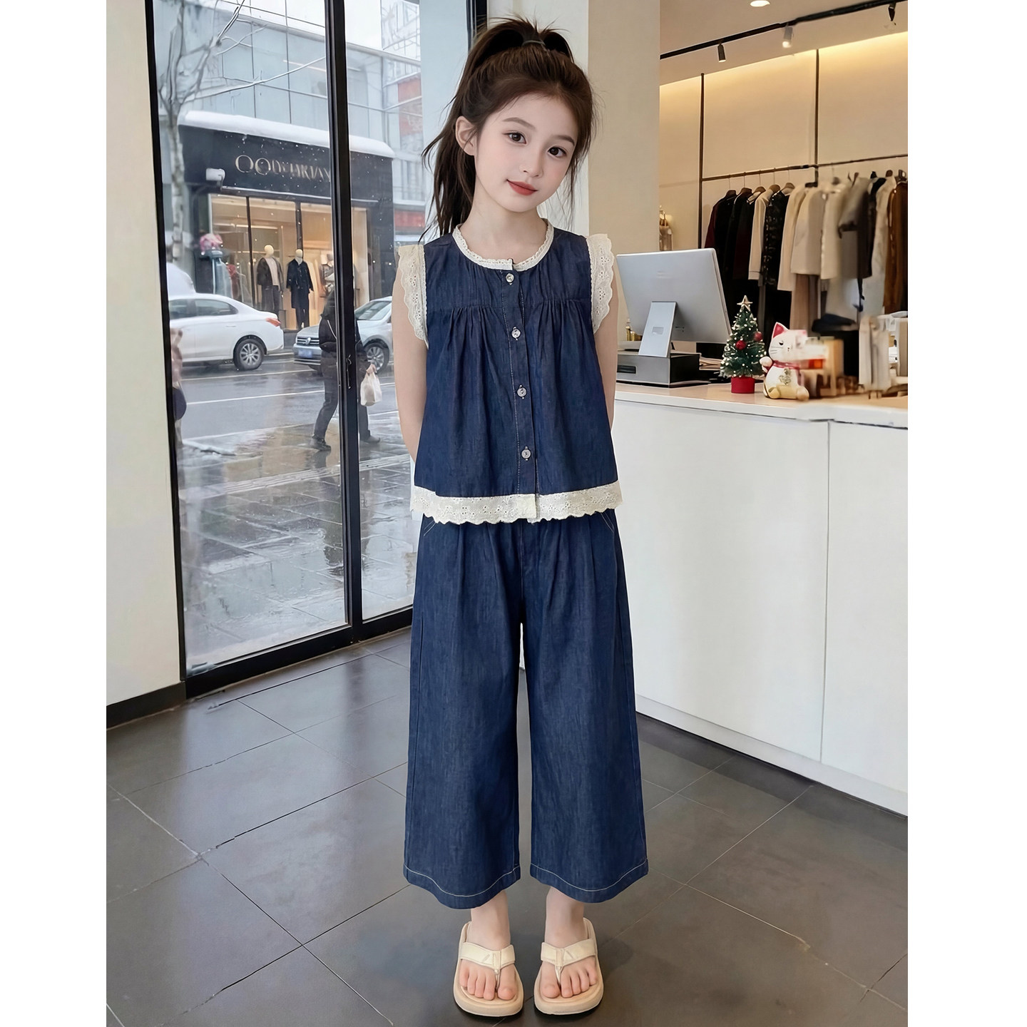 儿童网红洋气时髦爆款 女童夏装 套装 2026新款 女孩两件套 牛仔阔腿裤