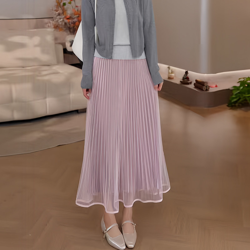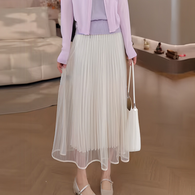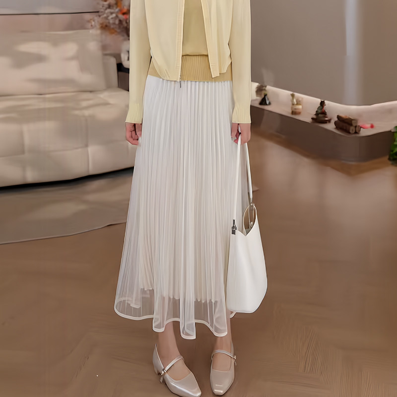 豆豆春夏季 半身裙女中长款 百褶网纱A字裙显瘦长裙 26CQ5997 新款由