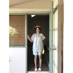 馨帮帮Homedress 圆领开衫 家居服套装 甜美蕾丝边小碎花睡衣女夏季