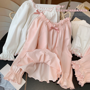 2026春季 长裤 宫廷风蕾丝花边宽松家居服套装 云朵棉睡衣女士长袖