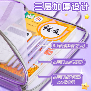 小学生初中生专用手提书袋高中生试卷资料书本作业袋子档案科目分类袋 双层大容量A4透明网纱文件收纳袋拉链式