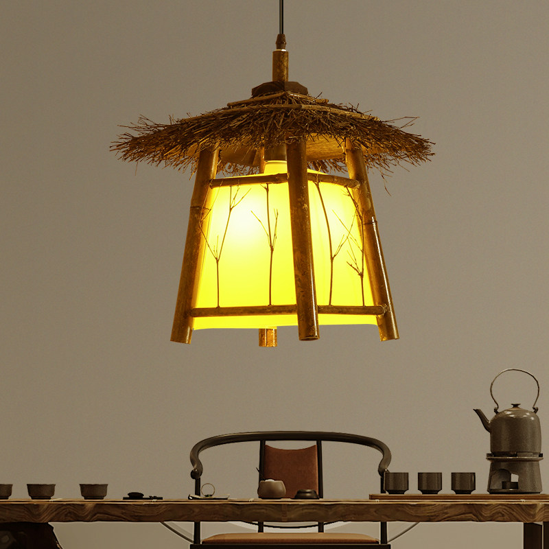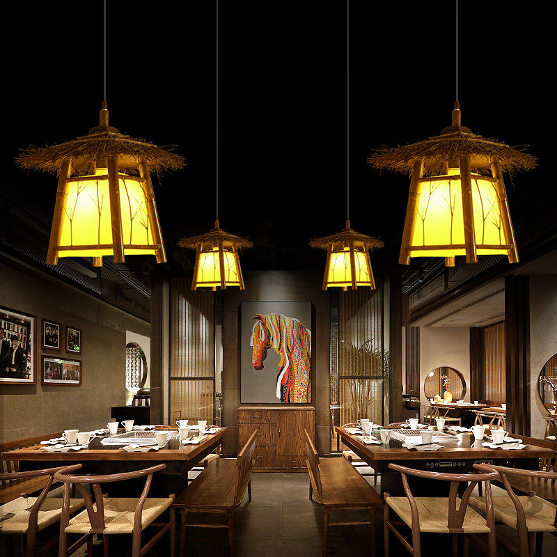 餐厅禅意茶室走廊民宿小房子灯具 复古怀旧凉亭吊灯仿古亭子灯中式由