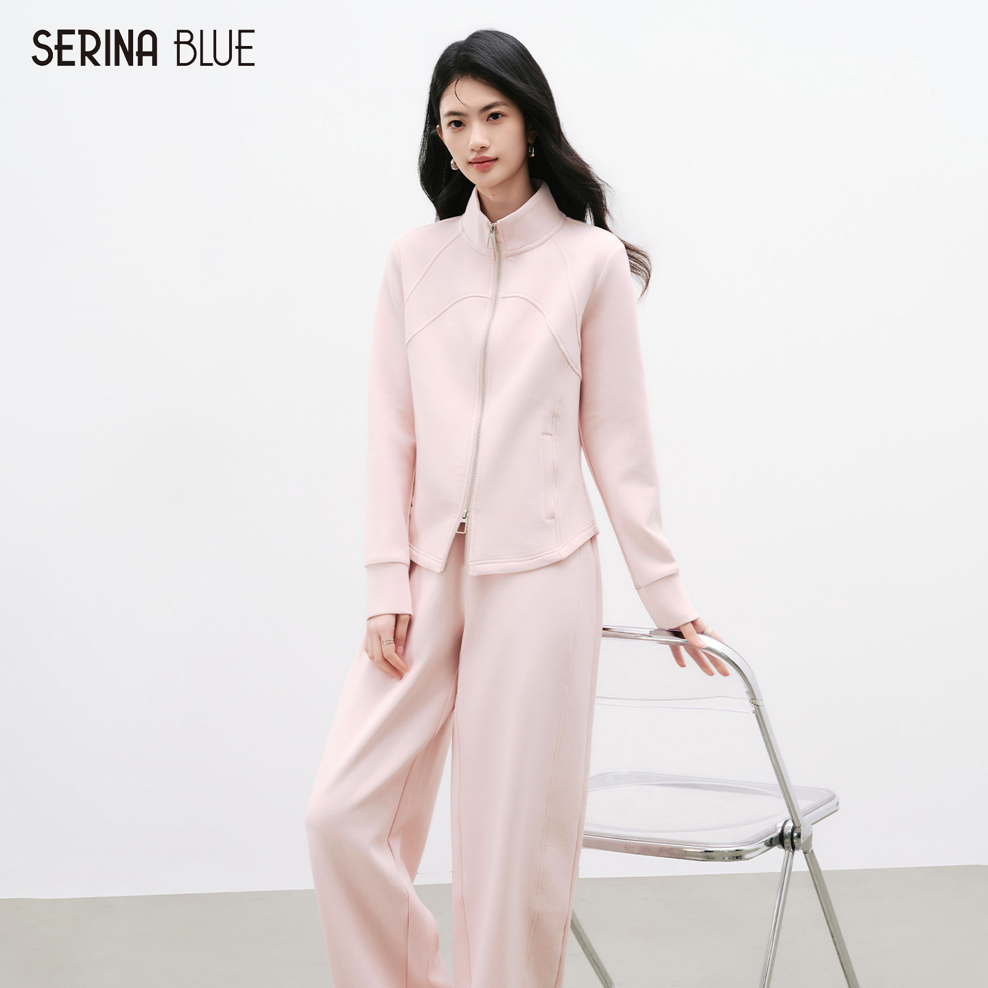 SeRinaBlue2026年春季 立领拉链卫衣休闲套装 女时尚 运动两件套 新款
