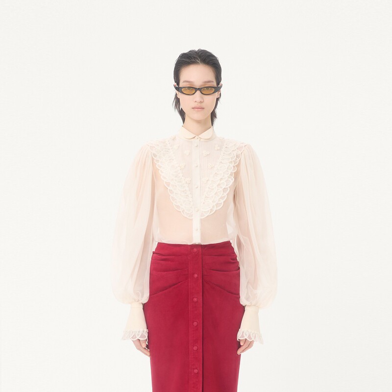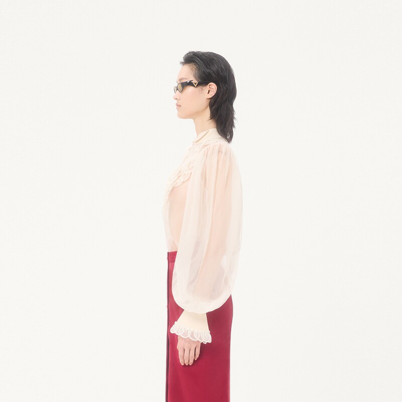 上市 华伦天奴VALENTINO女士刺绣欧根纱衬衫 新品由