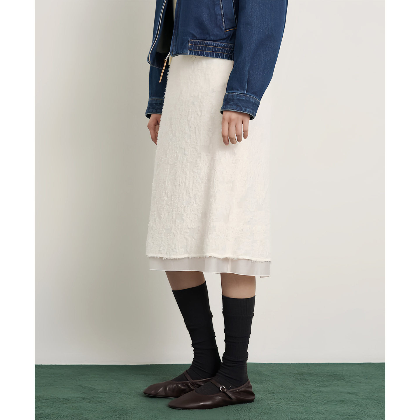 大码 胖mm重工网纱刺绣拼接蕾丝不规则蛋糕裙 女春季 白色半身裙长款