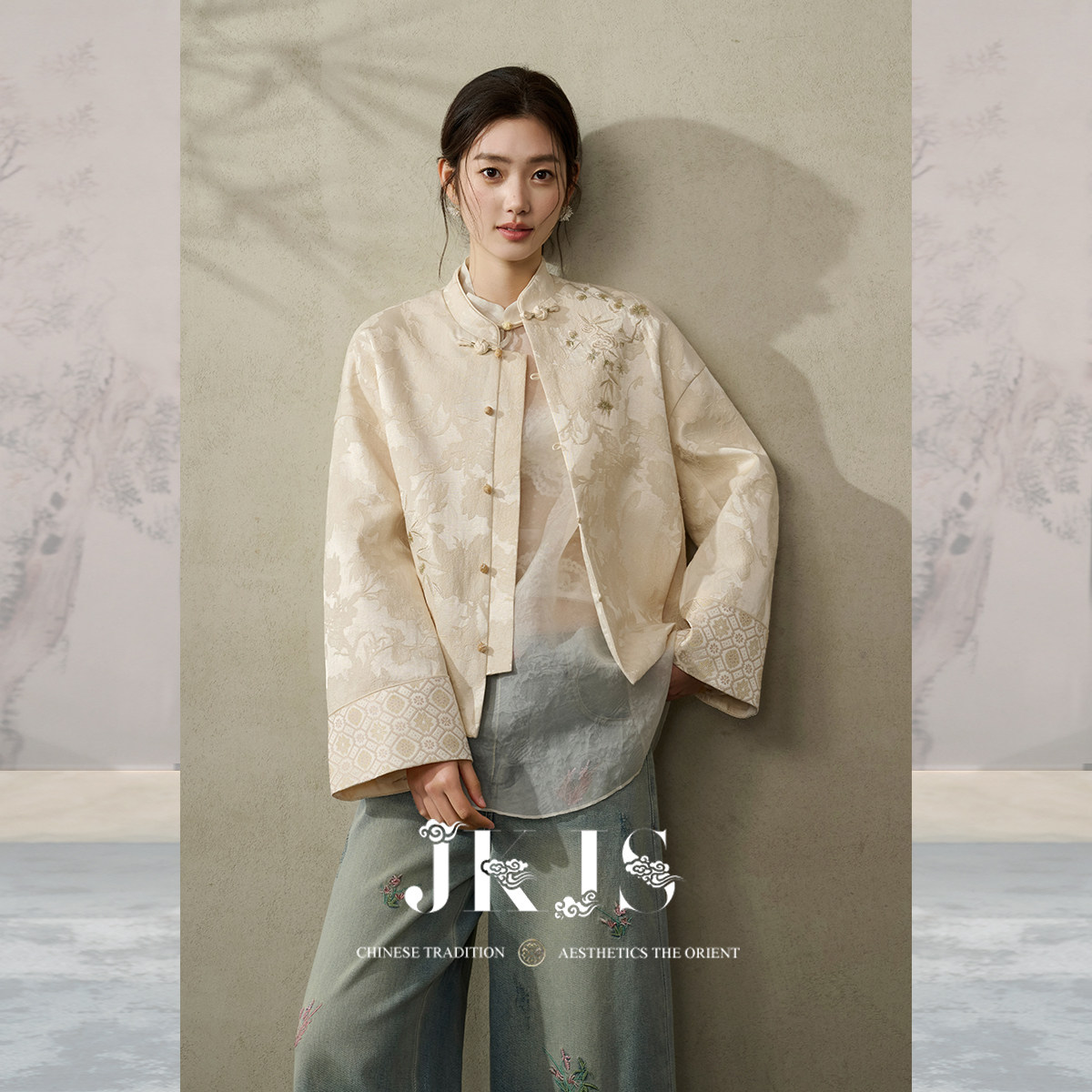 为您提供商品盘扣短外套2026新款 JKJS 满庭芳 人丝提花 绣花上衣 国风新中式的详细介绍,