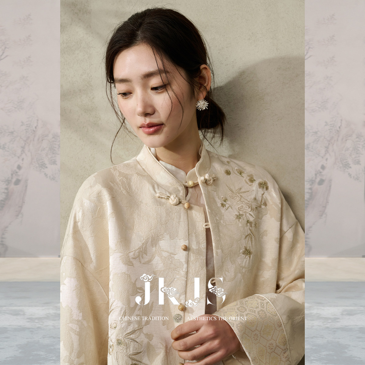 盘扣短外套2026新款 JKJS 满庭芳 人丝提花 绣花上衣 国风新中式由