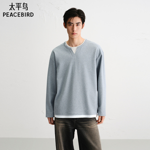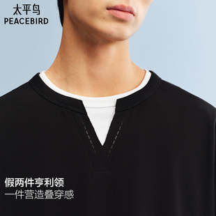 新款 太平鸟男装 亨利领重磅短袖 T恤2026夏季 假两件肌理情侣体恤衫