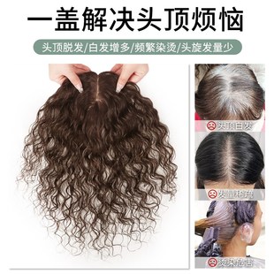 真发假发片头顶遮白发卷发蓬松增发自然隐形持久烫女士头顶补发片由