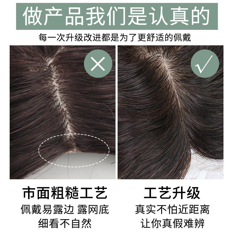 假发片女头顶补发量高颅顶全真发遮白发自然前额刘海片胎毛 美禾