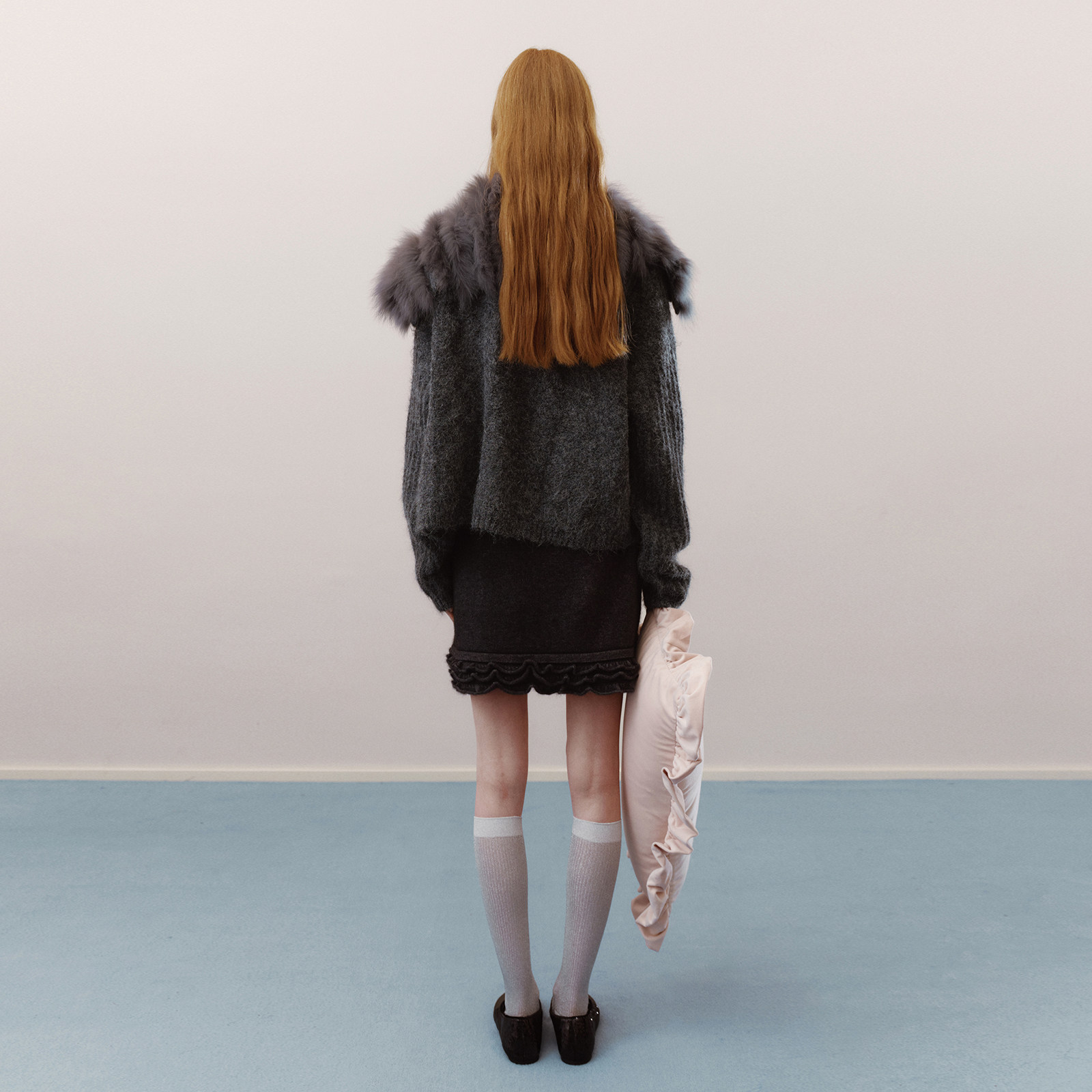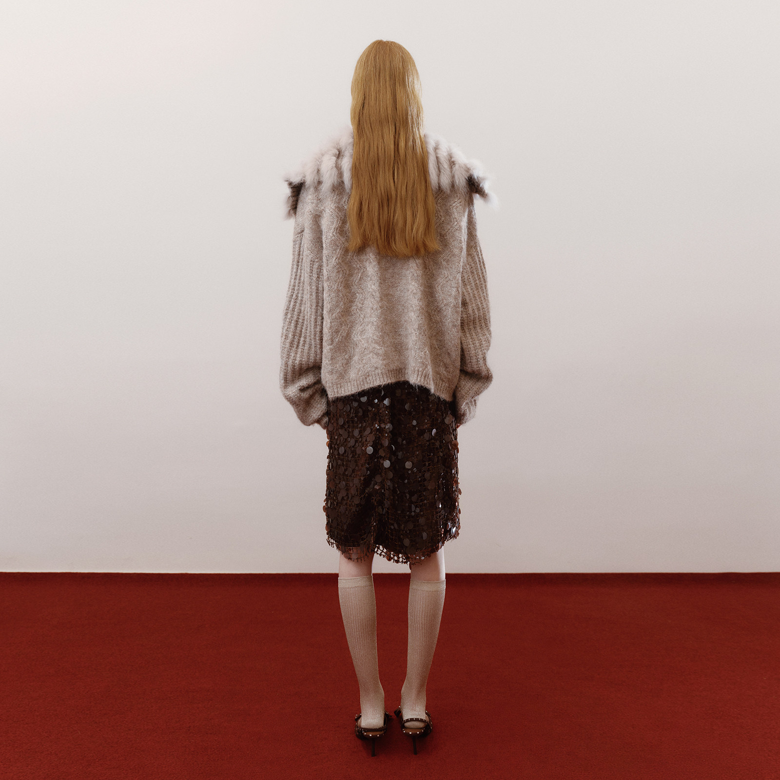 wana 冬季 新款 节日氛围复古慵懒女上衣外套 try貉毛毛领针织厚开衫